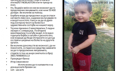 Малиот Лука веќе една и пол година се лекува во Истанбул, Турција, борејќи се против ретката болест што ги напаѓа очите – Retinoblastom или тумор на...