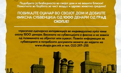 Град Скопје преку соопштение информира дека Јавниот повик за субвенции за чистење на оџаци е продолжен до крајот на годината, односно до 31 декември 2018 година....