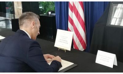 Претседателот на Комисијата за европски прашања и на Групата за пријателство со САД, Артан Груби, кој престојува во Вашингтон, се потпиша и во книгата на жалост...