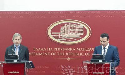 Прес-конференција на претседателот на Владата, Зоран Заев, и еврокомесарот за соседска политика и проширување, Јоханес Хан, кој е во посета на земјава.