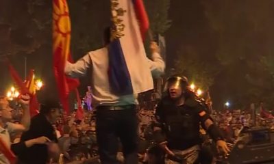 Единицата за брзо распоредување со шок бомби и солзавец вечерва ги растераа демонстрантите кои протестираа против промената на името пред Собранието на Република Македонија, а за...