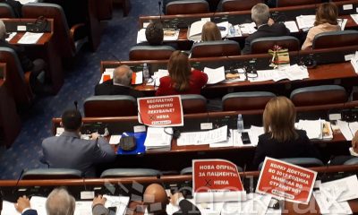 Почна седницата за гласање доверба на Владата. Опозицијата се врати во Собранието, а пред речиси секој пратеник има транспарент на кој пишува што не исполнила Владата...