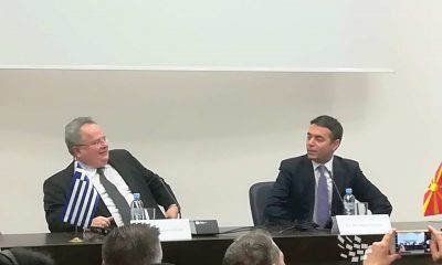Заедничка прес-конференција на шефовите на македонската и грчката дипломатија, Никола Димитров и Никос Коѕијас.