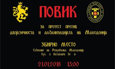 Македонски обединети сили (МОС), „Тврдокорни“ и уште неколку здруженија денеска во 13 часот пред Собранието на Република Македонија иницираат „Протест против двојазничноста и албанизација на Македонија“....