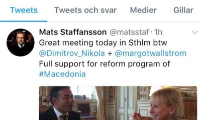 Македонија добива силна поддршка од Шведска за одлуката да спроведе радикални реформи и да ги доврши евро-атлантските интеграции. Шведскиот амбасадор во Македонија, Мат Стафансон, на „Твитер“...