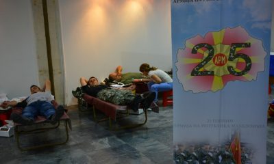 Припадниците на АРМ од гарнизоните Скопје, Велес и од Петровец како и многупати досега во голем број се приклучија на денешната акција на доброволно дарување крв...