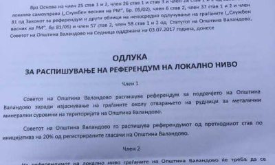 Советот на Општина Валандово со 8 присутни советници и 8 гласа „за“ донесе одлука за распишување на локален референдум. Откако иницијатива на повеќе од 2.000 граѓани...