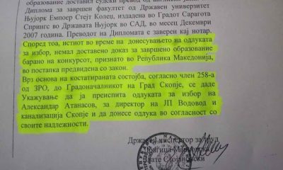 Државниот инспекторат за труд потврди дека за време на донесувањето одлука за избор на директор, Александар Атанасов немал доставено доказ за завршено образование признато во Република...