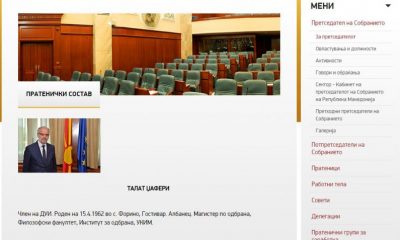 Од официјалната интернет страница на Собранието (www.sobranie.mk) отстранета е фотографијата на претходниот спикер, Трајко Вељаноски, а ставена е од неговиот наследник Талат Џафери. Како потретседатели се...