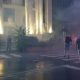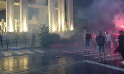 Демонстрантите ја урнаа оградата од пред Собранието. Помала група влезе на тревата пред законоданвиот дом. Фрлаат со факли, петарди, камења, шишиња и други предмети кон зградата....