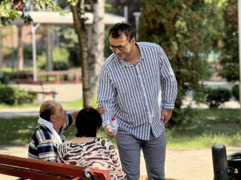 -Високите температури се опасни по здравјето на сите граѓани, особено на повозрасните. Наш мал придонес во борба со црвениот температурен аларм е акцијата која ја спроведовме со Црвениот крст за бесплатно делење шишиња со вода во паркот во Ѓорче Петров, информираше градоначалникот Александар Стојкоски, кој присуствуваше на терен со волонтерите.