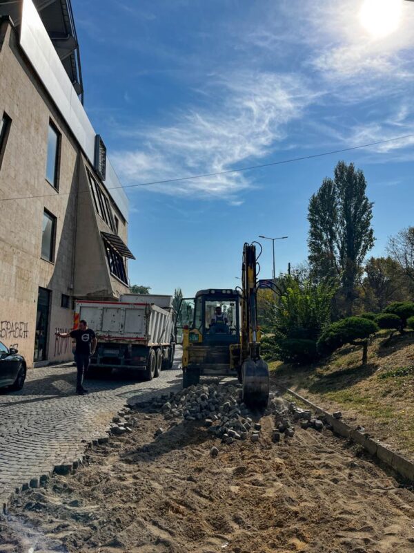 Градежните зафати, на кои работи ЈП „Улици и патишта“, се одвиваат на потегот пред Градскиот стадион, каде што е вградена камена коцка, односно калдрма, која со реконструкцијата ќе биде отстранета и на чие место ќе се постави нов алфалтен слој, извести Општина Центар.
