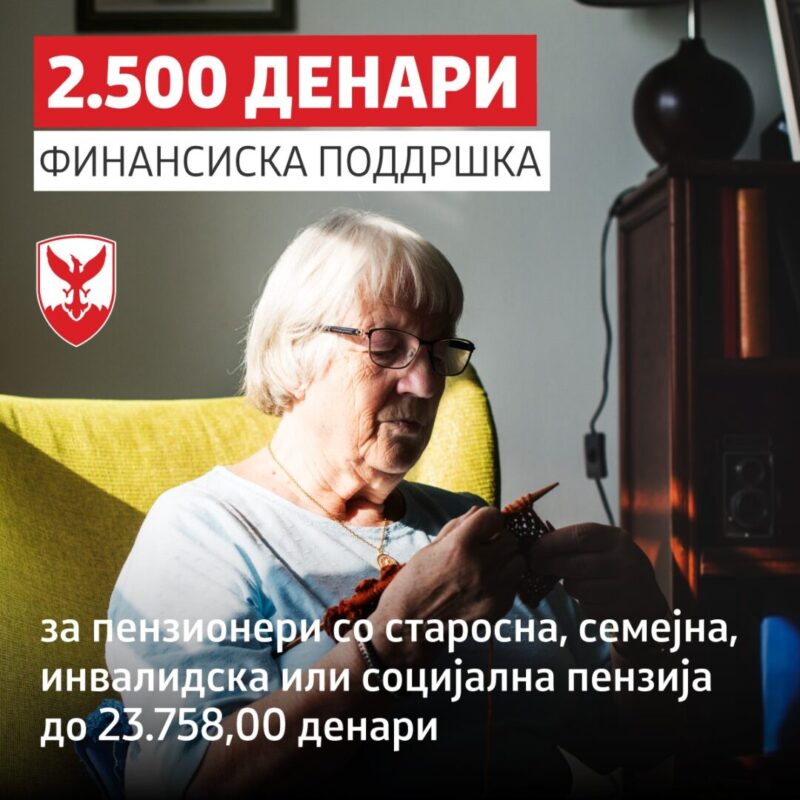 Еднократна парична помош, 2.500 денари за пензионерите во социјален ризик и примателите на социјална помош, најави Герасимовски