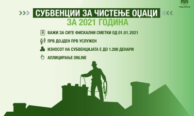 Градот Скопје во вторник (20.04.2021 година) ќе објави Јавен повик за субвенционирање на домаќинства и на други субјекти на подрачјето на Град Скопје за чистење оџаци...
