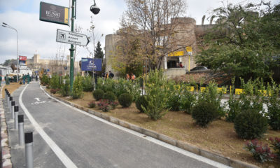 Пешачката површина пред објектот на главната пошта во центарот на градот од денеска има нов лик, изградена е нова велосипедска патека, поставени се клупи и канти...