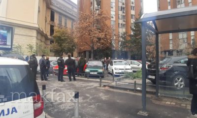 Полициска екипа утрово го обезбедува паркингот кај „Аутомакедонија“ во центарот на Скопје, каде што од денес може да почне да се гради барокната катна гаража од...