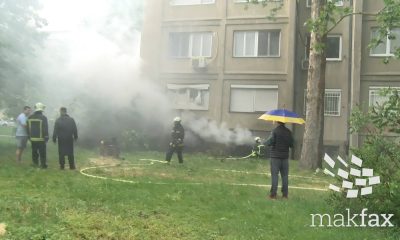 Изгореа подурмите на зградата број 10 на улицата Владимир Комаров во Скопје. Нема повредени ниту меѓу станарите ниту меѓу пожарникарите кои со седум возила го гасеа...