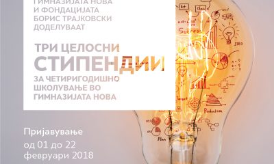 Фондацијата „Борис Трајковски“ и Меѓународното училиште „Нова“ по 14. пат го распишаа конкурсот за стипендии за четиригодишно школување во гимназијата „Нова“. Повикот е отворен до 22...