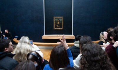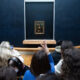 На снимката се гледаат две демонстрантки како се прикрадуваат под бариерите заштитувајќи го ремек-делото на Леонардо да Винчи пред да ја потурат сликата со супа. Потоа...