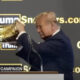 Поранешниот американски претседател Доналд Трамп ја претстави новата линија на патики, еден ден откако њујоршкиот судија го казни со речиси 355 милиони долари на судење за...
