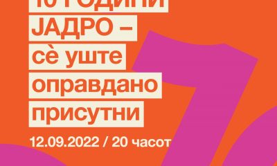 ЈАДРО – асоцијација на независната културна сцена го слави својот 10 годишен јубилеј со колективна изложба: „10 години ЈАДРО- сè уште оправдано присутни“! ЈАДРО е непрофитна,...