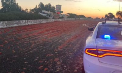 Три лица се повредени, од кои едно потешко, кога нивните автомобили се излизгале на автопат во Калифорнија. Автомобилите се излизгале откако на асфалтот се расфрлале домати...