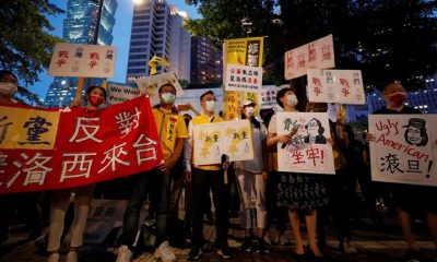 Пред хотелот каде е сместена претседателката на Претставничкиот дом на Конгресот на САД, Ненси Пелоси се одржува протест на прокинеската група, која се противи на нејзината...