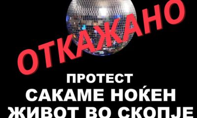 Иницијативата „Сакаме ноќен живот во Скопје“ го откажа протестот пред Владата, кој требаше да се одржи в среда со почеток во 20 часот. Од таму велат...