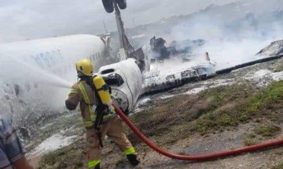 Патнички авион се урна при слетување на аеродромот во главниот град на Сомалија, Могадишу, а сите триесет патници се спасени. Црн чад и оган се издигнаа...