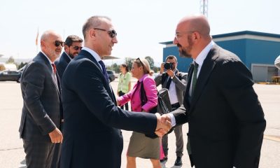 Првиот вицепремиер Артан Груби на Меѓународниот аеродром Скопје го пречека претседателот на Советот на Европа, Шарл Мишел кој допатува во еднодневна посета на земјата. Груби вели...