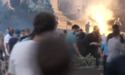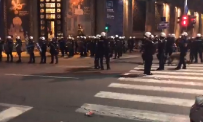 На протестите во Белград избија и првите инциденти пред Собранието. Се слушнаа неколку детонации, а полицијата фрла солзавец. Демонстрантите извикуваат „Вучиќ п***ру“ и фрлаат факли кон...