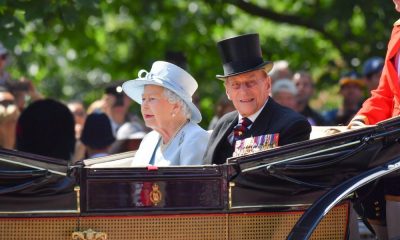 На славеничката фотографија принцот Филип позира во костум и вратоврска во боите на британската кралска гарда, а кралицата Елизабета Втора избрала фустан во жолт цветен дезен...