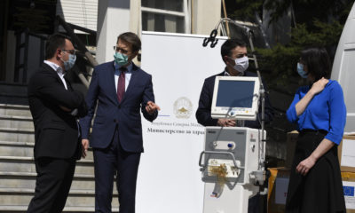 Амбасадорот на Европската Унија во земјата, Самуел Жбогар, им ги предаде првите 12 мeханички вентилатори на министерот за надворешни работи, Никола Димитров, и на заменик-министерот за...