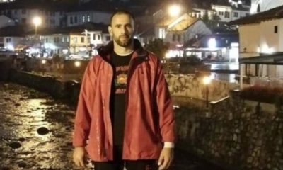 Бојан Јовановски – Боки 13 на денешното рочиште за случајот „Рекет“ во судницата, застанат пред екранот, листа фотографии и „селфи“ од „Инстаграм“ за да докаже дека...