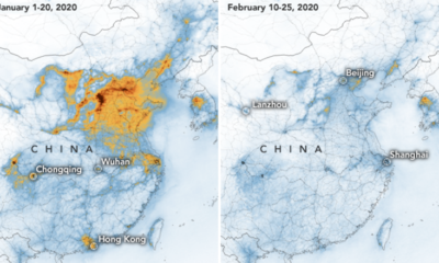 Сателитски снимки покажуваат драстичен пад на нивото на загаденост над Кина што барем делумно е предизвикано од падот на економската активност поради коронавирусот, јави американската вселенска...