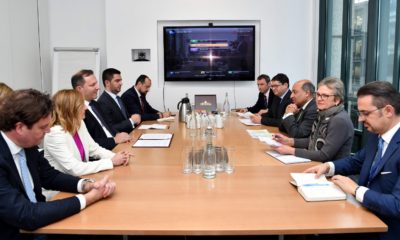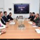 Техничкиот премиер, Оливер Спасовски, и членовите на владината делегација, министерката за финансии, Нина Ангеловска, и министерот за економија, Крешник Бектеши, во рамките на работната агенда на...