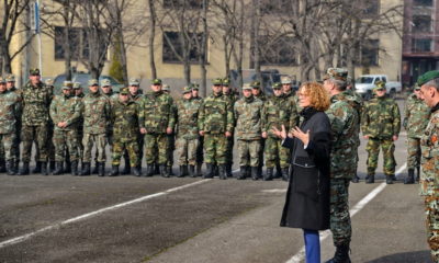 Министерката за одбрана, Радмила Шекеринска, денеска, во пресрет на ратификацијата на НАТО-протоколот за членство во лијансата и гласањето за измените на Законот за одбраната, во касарната...