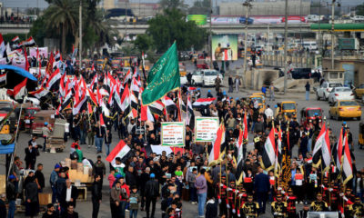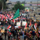 Стотици ожалостени Ирачани се обидуваат да влезат во американската амбасада во Багдад по воздушниот напад предводен од САД во кој загинаа 25 шиитски војници во Ирак....