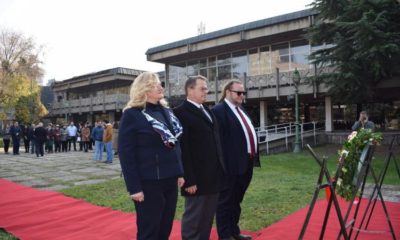 Делегација на Владата денес положи свежо цвеќе на споменикот на свети Климент Охридски пред Народната и универзитетска библиотека во Скопје по повод празникот 8 Декември, Ден...