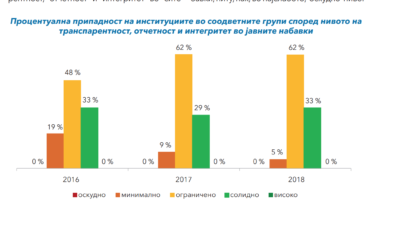 Министерствата, владините секретаријати и Собранието просечно исполнуваат 55,2 отсто (од максимално можни 100 отсто) од критериумите за транспарентност, отчетност и интегритет во целиот циклус на јавните...