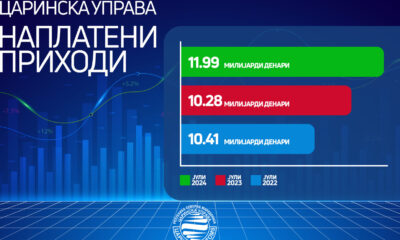 Царинската управа во последниот месец наплатила вкупни приходи од 11,9 милијарди денари, односно 195 милиони евра, што е, како што велат од таму, за 16,6 %...