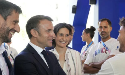 Емануел Макрон и Амели Удеа Кастер, министерката за спорт, станаа една од главните теми на социјалните мрежи по чудната прегратка и бакнежот за време на свеченото...