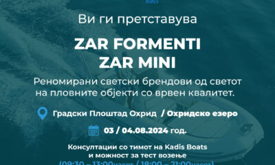 На 03 и 04 Август на Градскиот Плоштад во Охрид ќе имате можност да јапогледнете презентацијата на моторни пловила од реномираните светски брендови ZAR-FORMENTI и ZAR...