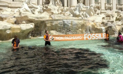 Седуммина активисти кои протестираа против климатските промени се качија на фонтаната Треви во Рим и истурија разреден јаглен во водата за да ја поцрнат, јавија италијанските...