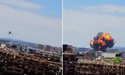 Борбен авион Ф-18 се урна за време на аеромитинг во воздухопловната база во Сарагоса, Шпанија. Пилотот на ловецот Ф-18 успеал да се катапултира пред авионот да...