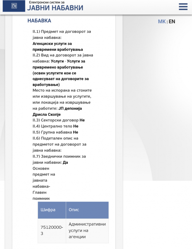 Во услови на тешка економска криза и во моменти кога се кратат плати, скопскиот градоначалник Петре Шилегов преку претпријатието „Дрисла“ склучил јавна набавка за нови времени вработувања со што директно ја отвора вратата за нови партиски вработувања, обвинуваат од Советничката група на ВМРО-ДПМНЕ на Град Скопје.
