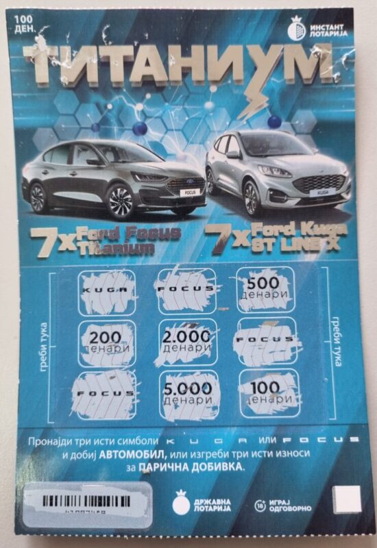 Во семејството на добитници на инстант лотарија добивме нов член. Лидија Перовиќ (83) од Скопје, е среќната добитничка на автомобил ford focus од првата серија на инстант лозот „Титаниум“. Ние ѝ приредивме незаборавно роденденско изненадување, со доделување на автомобилот токму на нејзинот 83-ти роденден.