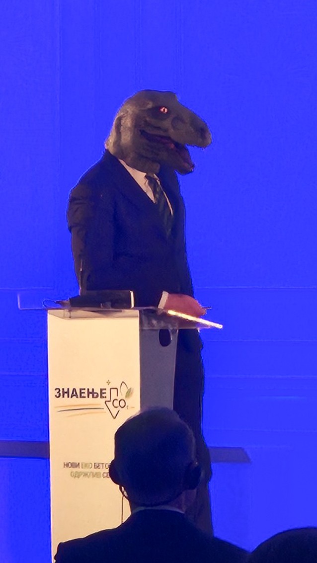 „Живееме во услови на брзи и нагли промени што предизвикува неизвесност. Скоро сите сектори, вклучувајќи го и градежништвото мора да се адаптираат на овие промени. Па оттука, соработката е многу важна, бидејќи ќе ни овозможи заедно да го најдеме најдобриот начин кој ќе гарантира раст и во следниот период. Градежништвото е исправено пред два предизвика. Едниот е поврзан со климатските промени и потребата од поголема имплементација на еколошки производи. Вториот предизвик е поврзан со потребата да не се запоставуваат базичните принципи на градежништвото – стручност, стандарди, свест и совест. За одржливо градежништво се потребни и двата аспекта и уверен сум дека со ваков тип на соработка во голема мерка ќе придонесеме за развој кој ќе се движи во вистинска насока“, истакна деканот на Градежниот факултет при УКИМ, проф. д-р Горан Марковски. За да ја потенцира важноста од стручноста во градежништвото и употребата на квалитетни и еколошки бетони, Марковски стави маска од диносаурус, алудирајќи дека ако не се грижиме за животната средина ќе имаме иста судбината на диносаурусите.