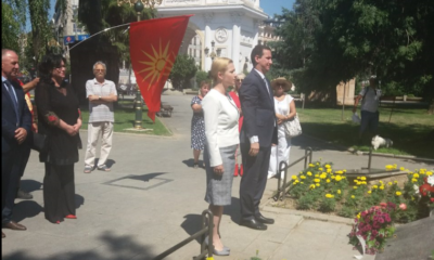 На споменикот на децата бегалци од Егејска Македонија, жртви на Граѓанската војна во Грција од 1946-1949 година, партиска делегација предводена од членовите на Извршниот Комитет на...