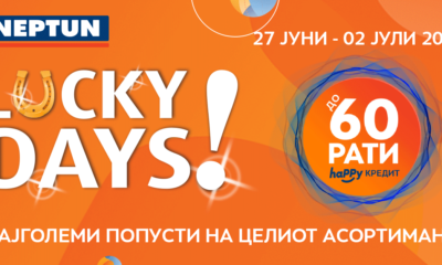 Во периодот од 27 јуни до 2 јули во „Нептун“ има голема акција Lucky days со најголеми попусти на целиот асортиман и шопинг до 60 рати...